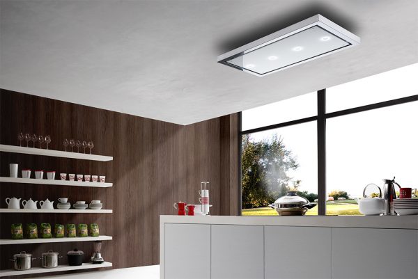 קולט אדים צמוד תקרה 120 ס"מ מסגרת נירו' תחתית זכוכית לבנה Airone דגם: AMADEUS 120