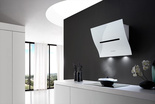 קולט אדים ורטיקלי 80 ס"מ זכוכית לבנה Airone דגם: BOHEME VETRO