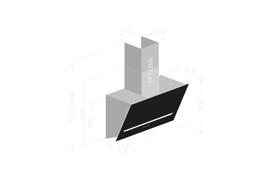 קולט אדים ורטיקלי 90 ס"מ זכוכית שחורה Airone דגם: LEONARDO