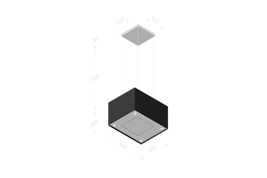 קולט אדים אהיל אי 60 ס"מ זכוכית שחורה Airone דגם: MEDEA